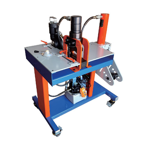OK系列母排加工组合机为提升工作效率和保障作业安全而设计,是制作大型电控箱及输配电建设工程施工的配套设备。该设备集电动液压泵、切排机、冲孔机和弯排机于一体,安装在可移动的工作台上。电动液压泵通过换向阀与各设备连接,可快速切换不同功能,操作简便。采用24V低压控制开关,避免操作人员意外触电。