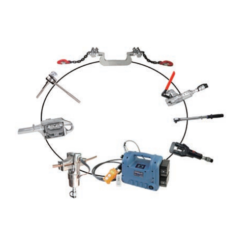 套装配套较轻的肩背式电动液压泵,配套接触线切刀、承力索切刀、硬点校直钳头使用,可双肩背,单肩背,挂在作业平台上使用便于接触网高空作业